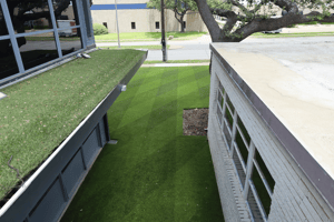 One of the most common and surprising causes of artificial turf damage is reflected heat from Low E windows.